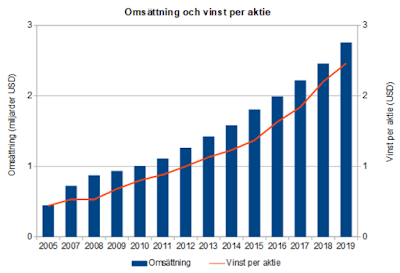 Ekonomi och utveckling. Även om det här inte är ett tillväxtcase har man en genomsnittlig omsättningstillväxt på 5 % de senaste 10 åren. Balansräkningen är som sagt brutalt stark och kassaflödet likaså.